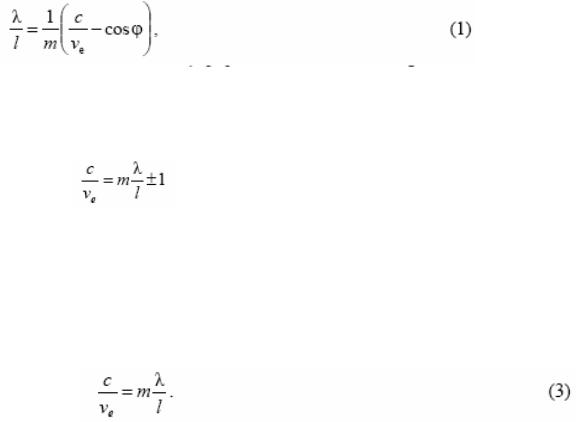 де λ – довжина хвилі випромінювання, l – період структури, m = 1, 2, 3 – номер гармоніки швидких хвиль, с–
