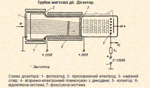 Дісектор -- передавальна трубка миттєвої дії у якої сфокусоване електронне зображення з фотокатоду шляхом електронного відхилення розгортається відносно нерухомого отвору з колектором.