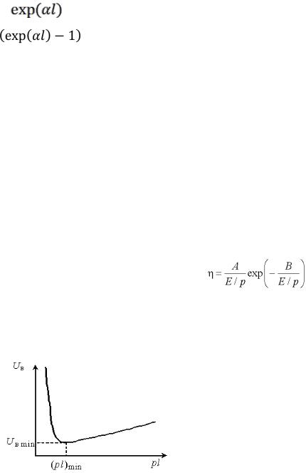 де U0 - поправка на початкову енергію електронів, що чисельно дорівнює потенціалу іонізації газу Ui. Залежність коефіцієнта об'ємної іонізації газу від наведеної напруженості електричного поля Е / р0 може бути виражена, наприклад, апроксимацією Таунсенда: