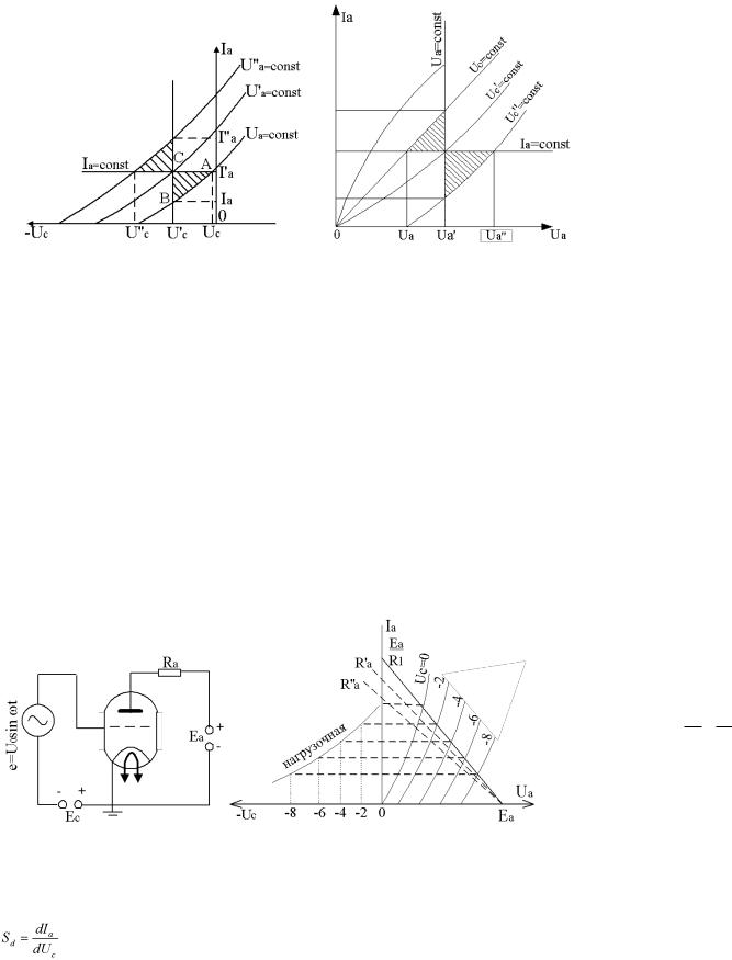 Рис. Типові анодно-сіткові та анодні статичні характеристики та методика визначення статичних параметрів лампи.