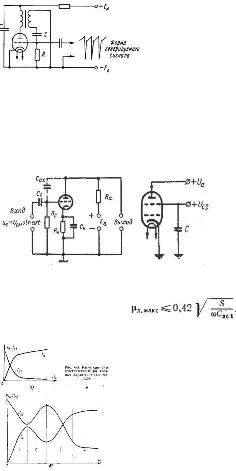 Рис. Схема включення тріоду з поясненням впливу прохідної ємності на збудження ВЧ сигналів у колі А-С та схема включення екрануючої сітки тетрода.
