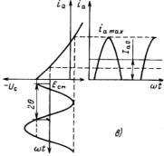 - дорівнює половині різниці фаз гармонійного сигналу від початку проходження Іа до запирання лампи. Зменшується постійна складова Іа0 та підвищується коефіцієнт використання анодної напруги (UmR/Uдж)