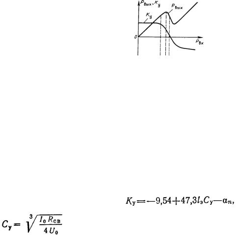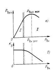 Розгледимо основні параметри і характеристики ЛБХ. Характер залежності вихідної потужності від потужності вхідного сигналу (амплітудна характеристика) і коефіцієнта посилення приведені на рис.8.