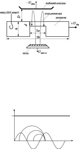 На рис.4 наведена загальна схема відбивного клістрона. Роботу відбивного клістрона можна пояснити