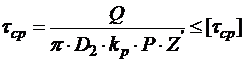 где [τср]=(0,2…0,3)σр - для стальной гайки; [τср]=0.3*36.43=10.929 МПар - коэффициент полноты резьбы: