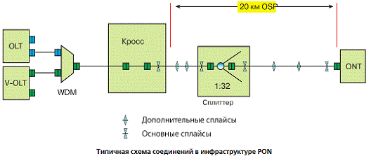 Рисунок 1.6 - Типова схема з'єднання в інфраструктурі PON