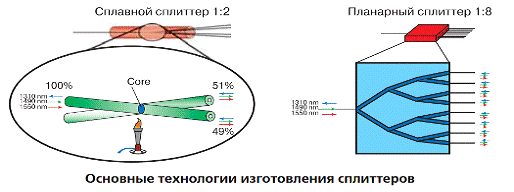 Сплітери - найважливіші елементи інфраструктури PON, які забезпечують поділ оптичного сигналу. Існують два основних типи сплітерів: сплавні і планарні.