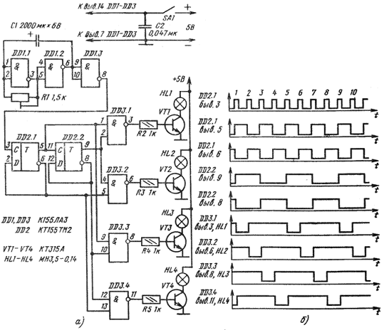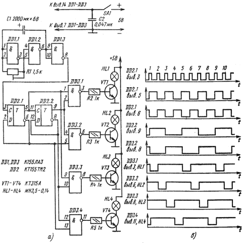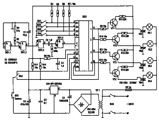 Рисунок 3 - Принципова схема автомату світлових ефектів на мікросхемах
