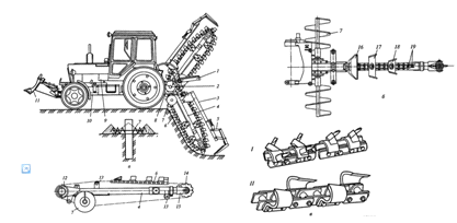траншеи. Резцы и скребки располагаются на цепи по определенной схеме,