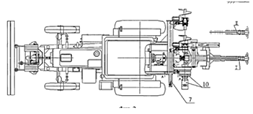 Регулировка производительности гидронасоса 4 осуществляется рычагом 23, который соединен посредством тяги 24 с рукояткой 25. При движении рукоятки 25 вперед из нейтрального положения обороты гидронасоса 4 и ведущего вала 21 увеличиваются пропорционально перемещению рукоятки 25, при движении рукоятки 25 назад через нейтраль вал 21 начинает вращаться в обратную сторону.