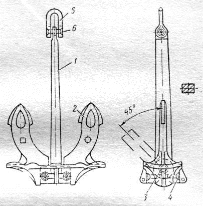 - веретено; 2 - лапа; 3 - валик; 4, 6 - штыри; 5 - якорная скоба