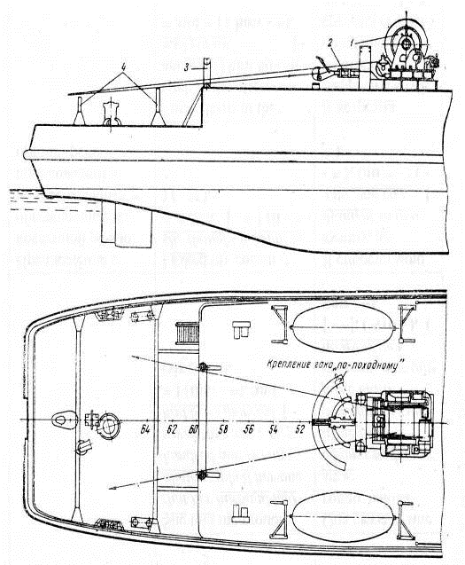 - лебедка-вьюшка; 2 - буксирный гак; 3 - ограничительная арка; 4 - буксирная арка