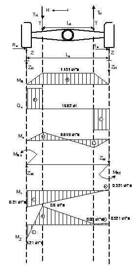 Следует отметить, что в сечениях «1-1», «2-2», «3-3» действует напряжение от изгиба балки моста, а в сечениях «4-4» и «5-5» напряжение от изгиба балки моста и тангенциальное напряжение (от крутящего момента).