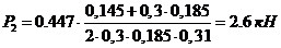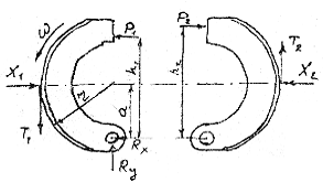 где а = 0,145 м; μ = 0,3 - коэффициент трения накладки по барабану; r = 0,185 м - радиус тормозного барабана; h1 = 0,28 м.