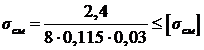 напряжение смятия; - наименьшая толщина соединяемых частей;