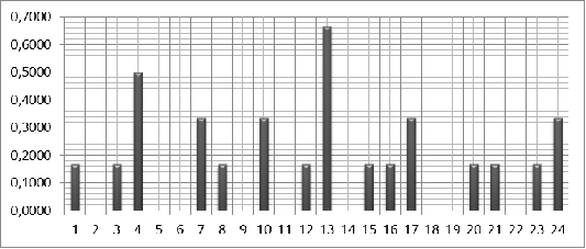 + 0,1667 * 20,5 + 0,1667 * 22,5 + 0,3333 * 23,5) / 1 = 21,04 = 21ч 2мин