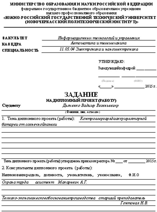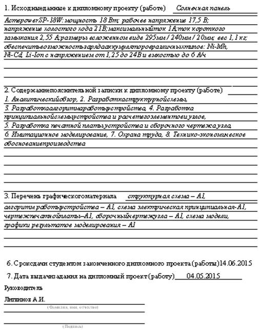 Дьяченко В.Е. Контроллер заряда аккумуляторной батареи от солнечной панели. Выпускная квалификационная работа. - Алчевск: ДонГТУ, 2015. - 133 с.