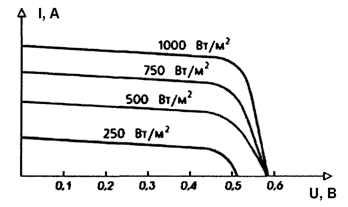 Рисунок 1.2 - ВАХ кремниевых солнечных элементов