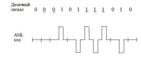 Рис.1.Принцип формирования сигнала AMI-кода из двоичного сигнала