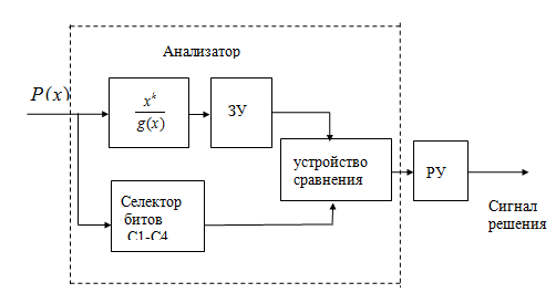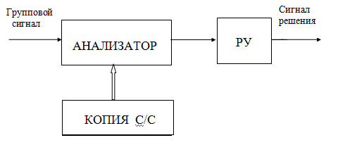 Групповой цифровой сигнал поступает на вход анализатора, в котором происходит сравнение кодовой комбинации синхросигнала с его копией, записанной в АНАЛИЗАТОРЕ. В случае отличия кодовой комбинации от синхронизирующей, на выходе анализатора появляется импульс ошибки, который поступает на вход решающего устройства РУ.