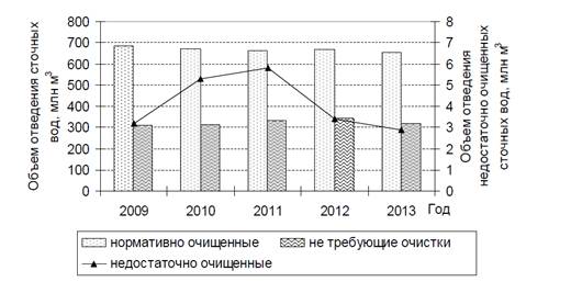 В 2013 г. в целом для страны количество сточных вод,содержащих загрязняющие вещества, составило 890 млн м3 и уменьшилось по сравнению с 2012 г. на 59 млн м3.