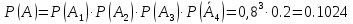 Событие А произойдет, если 3 раза подряд будет забит гол, а 4-й раз – будет промах.