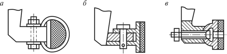 Рис. 6.23. Типы прижимов: а — жесткий; б — балансирный; в — шаровой.