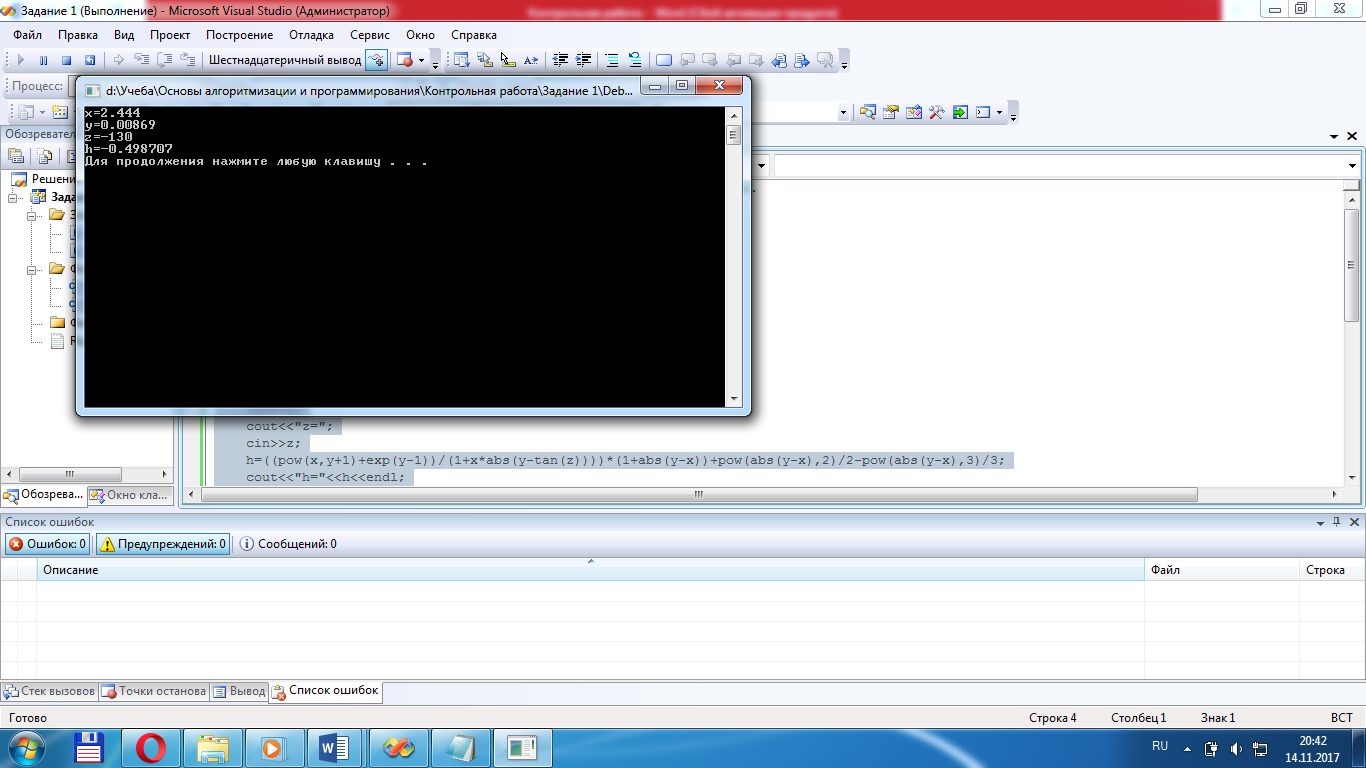 Задание 1. Создать программу вычисления указанной величины. Результат проверить при заданных исходных значениях.