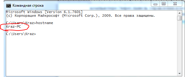 Способ 2 (самый простой). Открыть командную строку и ввести команду «hostname».