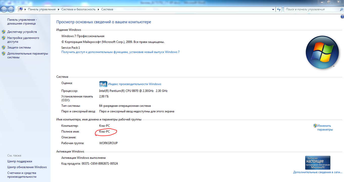 Способ 1 (годится для ОС Windows). Открыть основные сведения о компьютере (через панель управления или щелкнув правой кнопкой мыши на ярлыке с компьютером и выбрав «Свойства»).