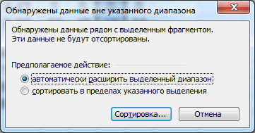 3. Разрешить компьютеру расширить диапазон данных, чтобы сортировались не только числа этого столбца, а все строчки таблицы.