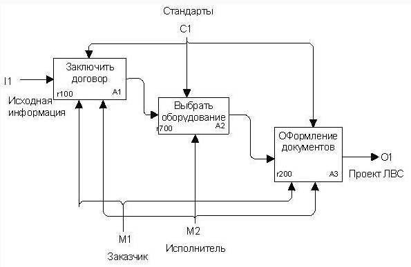 10. В функциональной модели, представленной на рисунке, отсутствуют названия интерфейсных дуг между блоками A1 и A2, A2 и A3. В этой ситуации выберите правильный ответ: