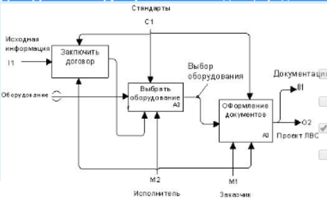 9. в функциональной модели, представленной на рисунке, отсутствуют названия интерфейсных дуг между блоками A1 и A2, A2 и A3. В этой ситуации выберите правильный ответ: