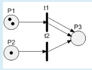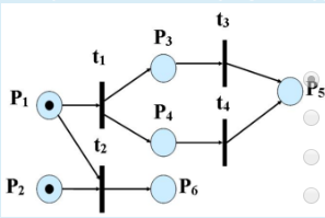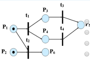 52. Для представленной на рисунке структуры сети Петри определите наличие ситуации конфликта и параллельной работы переходов.