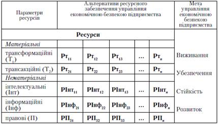 здійснення управління економічною безпекою підприємства має ресурсне