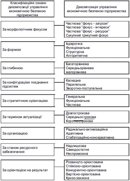 економічною безпекою підприємства, а, відповідно, й декомпозиції такого
