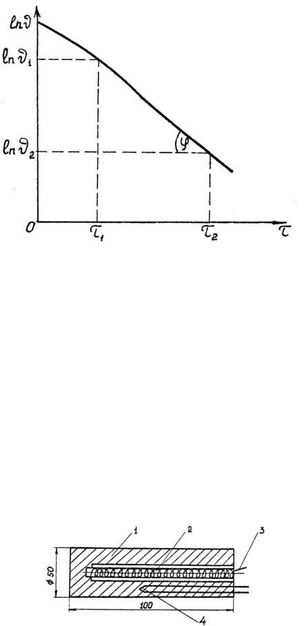 Если построить график в полулогарифмических координатах (по оси ординат откладывать lnϑ, а по оси абсцисс – время τ), то получается прямая линия, тангенс угла наклона которой равен темпу охлаждения (рис.4.), т.е.