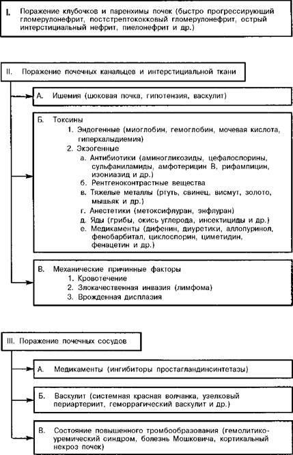 Этиология: Если проанализировать все указанные этиологические факторы ОПН, то можно выделить следующие основные группы: