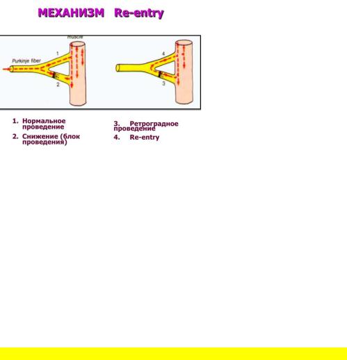 2)круговая циркуляция волны возбуждения (re-entry) и