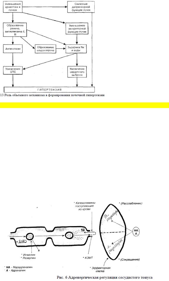 1.Увеличение кальция в клетках гладкой мускулатуры и присоединение почечного ионообменного механизма, который работает так: что для увеличения выделения натрия и воды через почки необходимо повышение АД, и поэтому почке принадлежит важная роль в стабилизации АД на постоянно высоком уровне