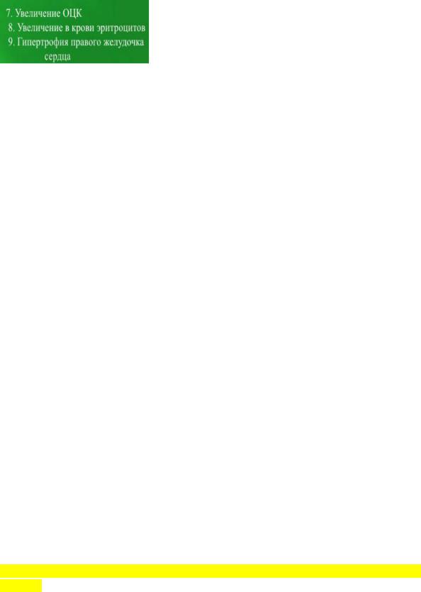 1. гипоксемияот легких оттекает кровь и поступает в большой круг кровообращения обедненная кислородом и с увеличенным парциальным давлением углекислого газа.