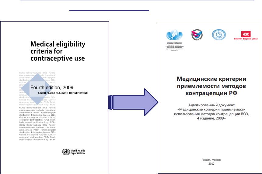 Руководства для выбора методов контрацепции – ВОЗ (2009 г.) Национальные критерии приемлемости методов, 2012 контрацепции РФ (май 2012 г.)