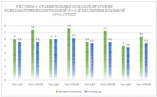психомоторного развития контрольной (n=5) и экспериментальной (n=5) групп до