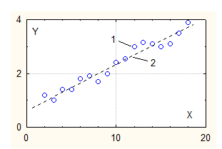 многомерной зависимостью. Пример парной линейной зависимости приведён на рис.