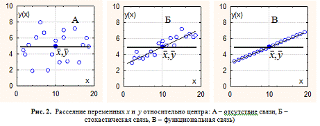 линейной стохастической связи, когда рассеяние точек есть, но оно имеет общую