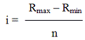 где Rmax и Rmin - максимальное и минимальное значение переменной;- число интервалов.