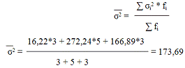 Средняя из групповых показывает, что изменение объема смр, в среднем, по всем трем группам составляет 173,69 тыс. руб. Влияние группировочного признака здесь также не учитывается.