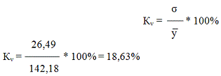 как коэффициент вариации меньше 33% и составляет 18,63%.