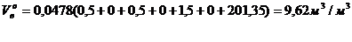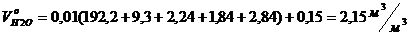 Теоретический объём водяных паров (м3/м3)