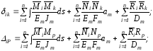 Каждое перемещение в системе уравнений (5.12) определяется по известным из строительной механики формулам и состоит из трех членов, учитывающих влияние деформаций изгиба, обжатия стержней нормальными силами и осадку упругих опор: